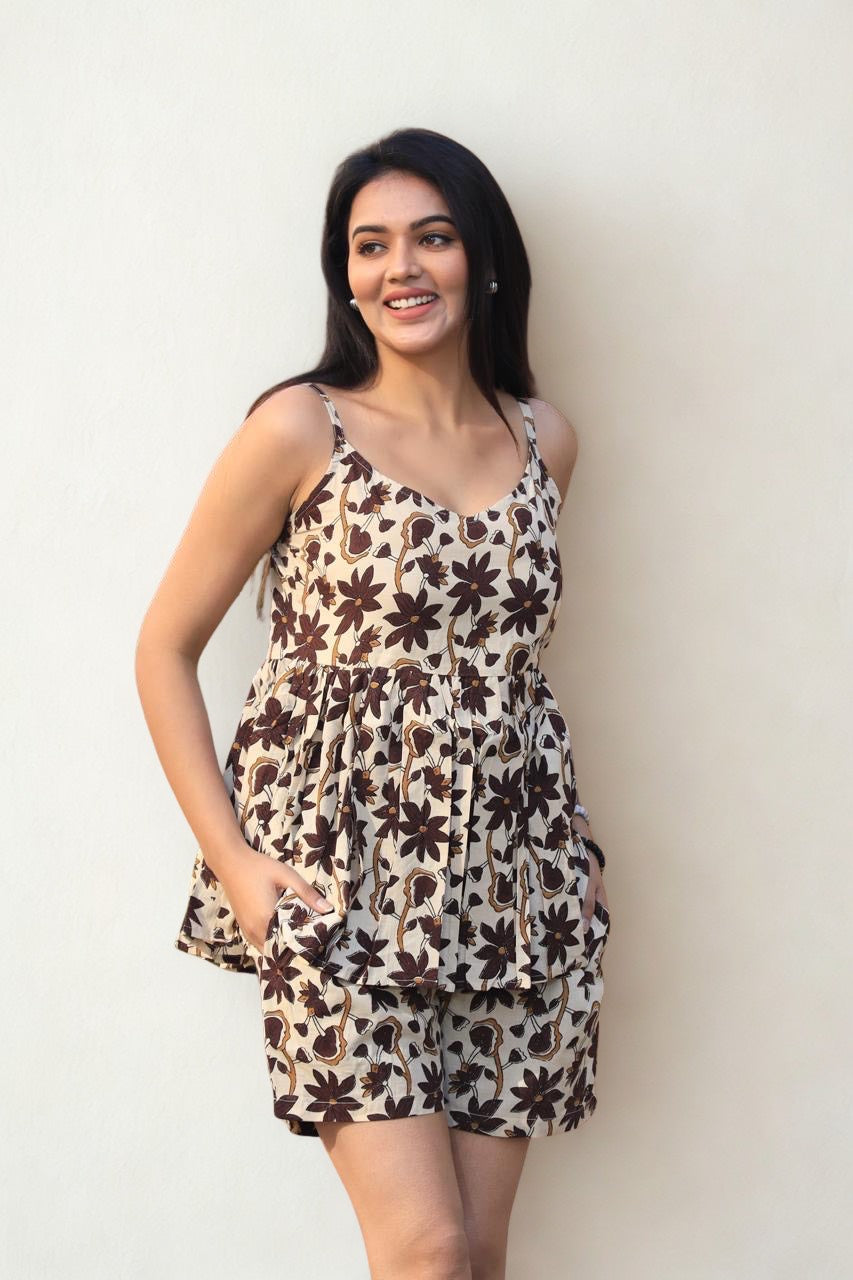 Stay effortlessly stylish with our Amrita Co-ord set its easy, breezy and skin-friendly. A summery set for a cafe brunch or a beach day out. Style it with a pair of our beautiful Aarkha X Pallavi handmade earrings to amp-up your look!